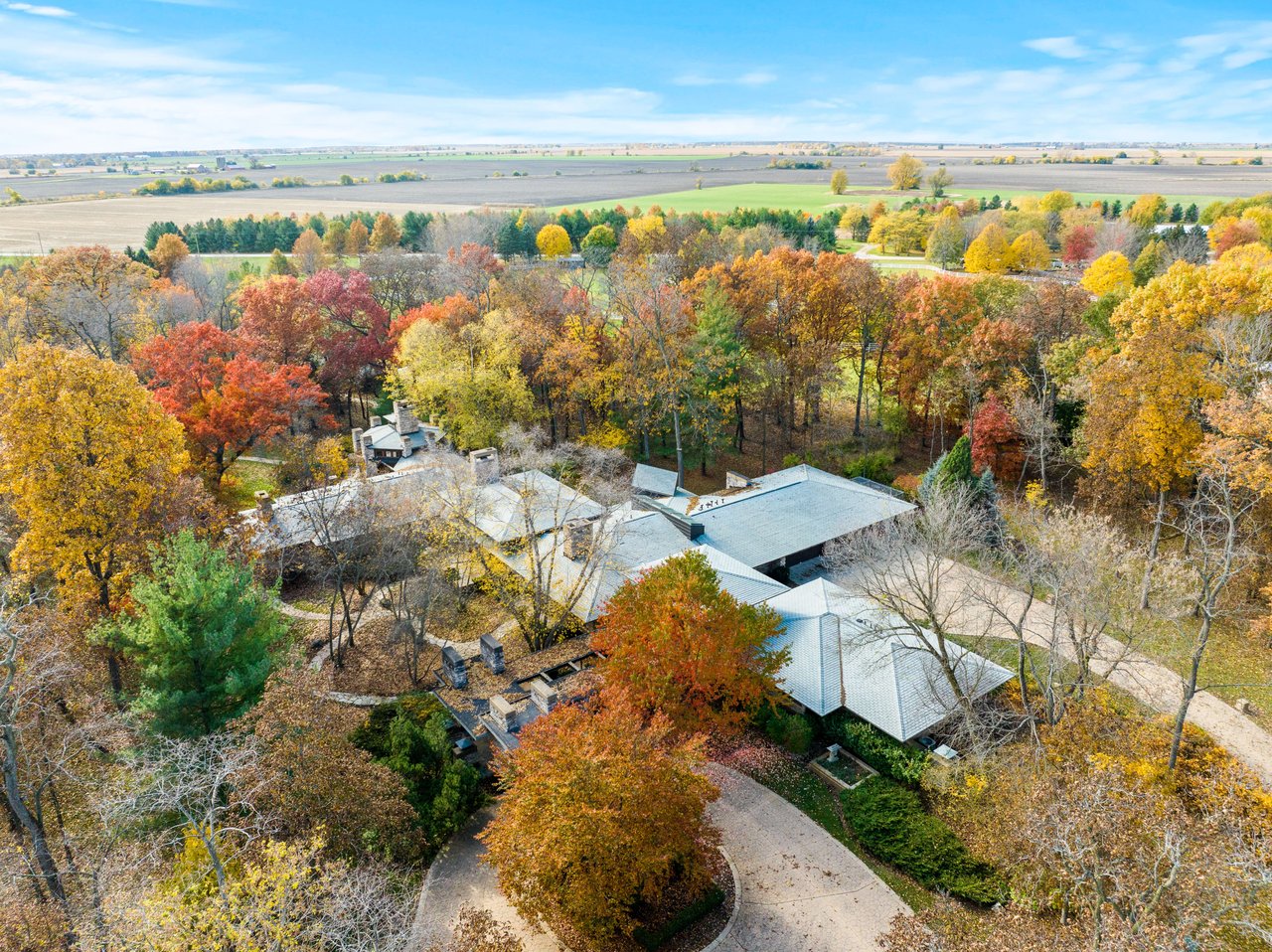 Welcome to the gated entrance of this exquisite Prairie-style country estate designed by Chicago's Mark Zinni who built this unique property to be one with nature and endless room to roam away from the hustle and bustle. Accessible by a one-hour drive from downtown Chicago, or the last stop on the Union Pacific West Metra Train Line, or by helicopter landing on the private helipad. Several private airports are also within easy driving distance. The main house built with fond-du-lac stone is set on an expansive 151 acres and has over 7500 square feet of living space. Impeccably maintained, this estate has everything needed for entertaining, working, relaxing, horseback riding and corporate events. Filled with vast windows, clerestory architectural details and unique skylights, this light-filled retreat is a home for all seasons. As you walk through the home filled with flagstone and all hardwood floors, you will recognize ultimate quality and detail at every turn. The home's main level interior features include a light-filled, fully equipped modern kitchen, a second catering kitchen, and ample pantry options. Downstairs, there is a large wine cellar, cocktail area, and wine tasting room. And for all-ages entertaining, enjoy skee ball, billiards, poker, ping pong, and a personal 12-seat screening room theater. Also included is a fitness room. The sleeping wings of the home are extremely private and include a primary suite with a two-story stone fireplace, spa-like dual stone baths and dressing rooms. Beyond the main house you are guided by herringbone stone pathways that flow all around this lush landscape. A secondary entrance gate leads to the gorgeous guest house w/ two bedroom, two bathroom that welcomes visitors and includes a screened-in porch, full kitchen and cozy fireplace area. Includes a two car garage attached. We can't forget to tell you also about the pool house that has two full bathrooms, bar and fully outfitted kitchen that provides everything needed for hosting swimming friends and catering lovely events. For the equestrian lover; the home is surrounded by beautiful natural open space, three plus landscaped horse paddocks, four pastures, maintenance buildings and a hay barn, plus a stellar six-stable horse barn (room for expansion) and a 7000 s.f. indoor riding arena. Please call us for specifics on this beautiful property. Come see this STUNNING Estate!! We welcome you!